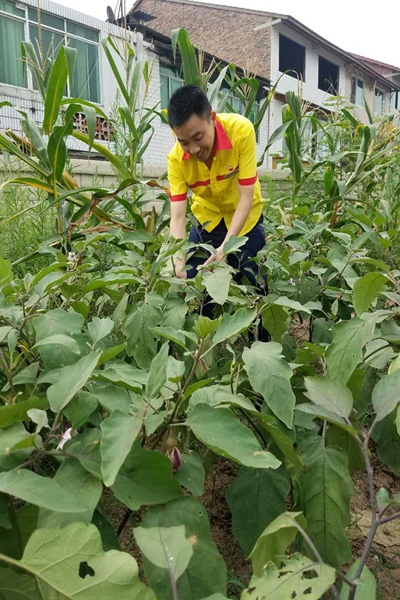 中路公司資中服務區(qū)下行加油站周圍有一片空地,平時雜草叢生,經(jīng)常需要花很大的精力除草。為了解決這個問題,站內(nèi)員工集思廣益,決定將這片空地開墾為菜地,變廢為寶。員工們利用工作閑暇時間除去雜草、瓦礫及碎石,種上應季蔬菜,經(jīng)過精心照料,終于迎來豐收?;鸺t的辣椒、絳紫的茄子、翠綠的豆角,一片生機盎然。此舉不但可以抑制雜草生長,美化環(huán)境,還能給餐桌增加綠色食品,節(jié)約開支。真正做到了開源節(jié)流,生態(tài)環(huán)保。最令人驚喜的是,它還為加油站增添了一道靚麗的風景線。